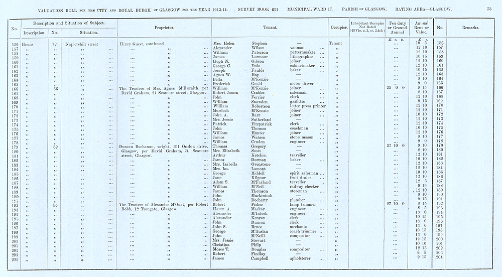 Glasgow Valuation Roll VR 1913-14, Ward 17, p073