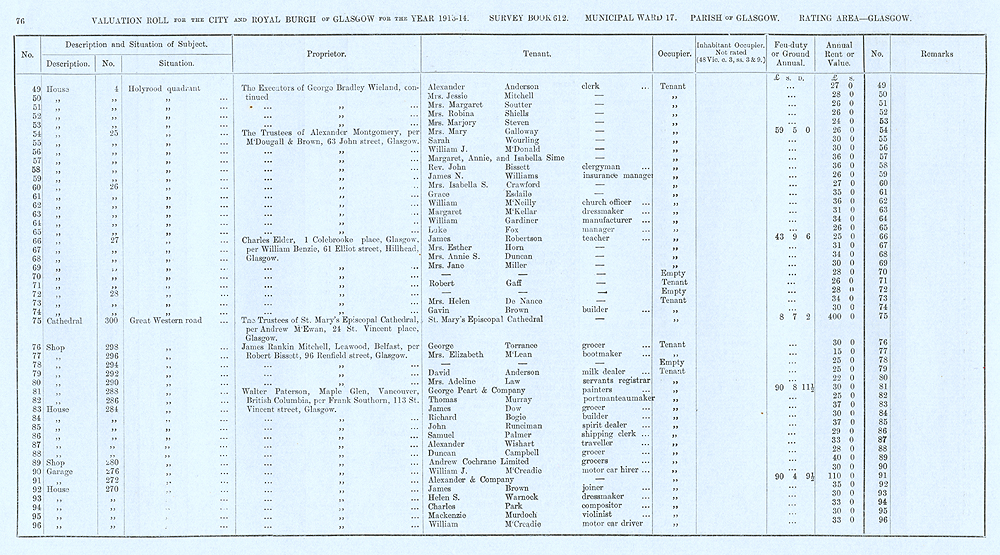 Glasgow Valuation Roll VR 1913-14, Ward 17, p076