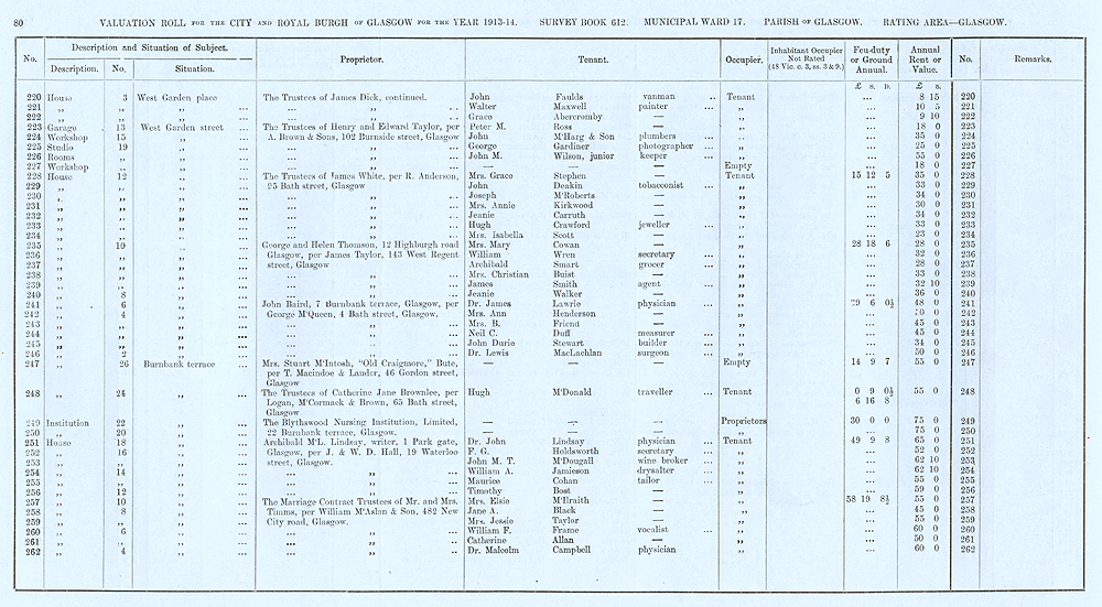 Glasgow Valuation Roll VR 1913-14, Ward 17, p080