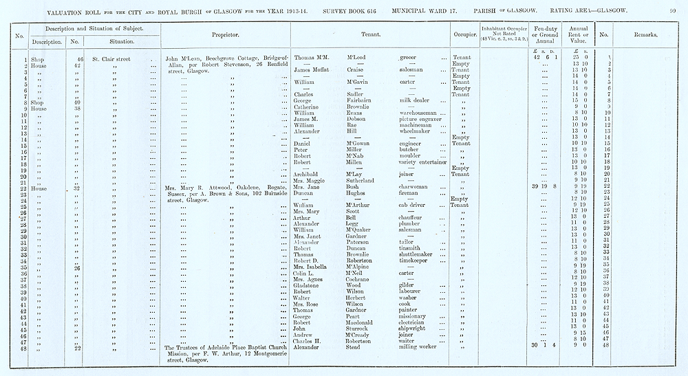 Glasgow Valuation Roll VR 1913-14, Ward 17, p099