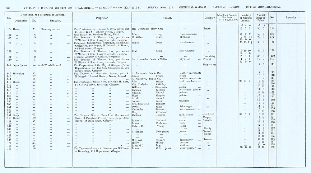 Glasgow Valuation Roll VR 1913-14, Ward 17, p102