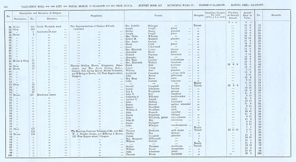 Glasgow Valuation Roll VR 1913-14, Ward 17, p106