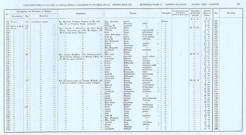 Glasgow Valuation Roll VR 1913-14, Ward 17, p107