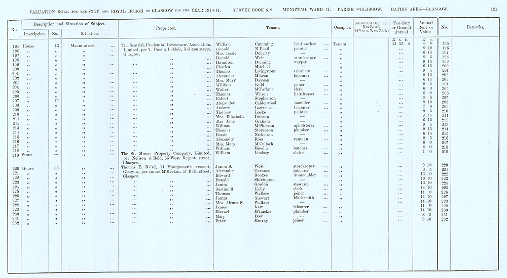 Glasgow Valuation Roll VR 1913-14, Ward 17, p121