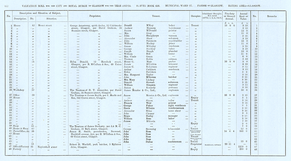 Glasgow Valuation Roll VR 1913-14, Ward 17, p122