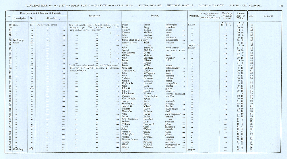 Glasgow Valuation Roll VR 1913-14, Ward 17, p123