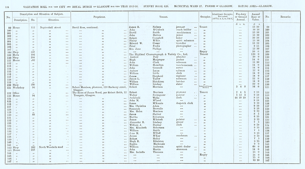 Glasgow Valuation Roll VR 1913-14, Ward 17, p124