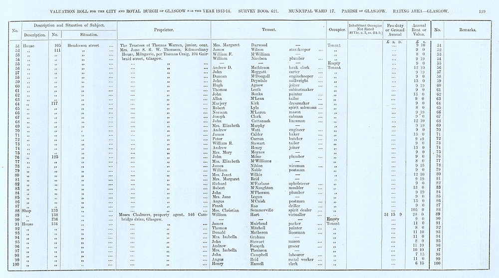 Glasgow Valuation Roll VR 1913-14, Ward 17, p129
