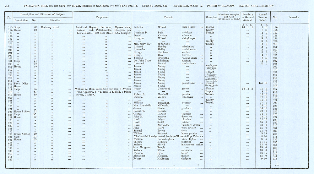Glasgow Valuation Roll VR 1913-14, Ward 17, p138