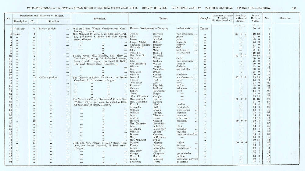 Glasgow Valuation Roll VR 1913-14, Ward 17, p141