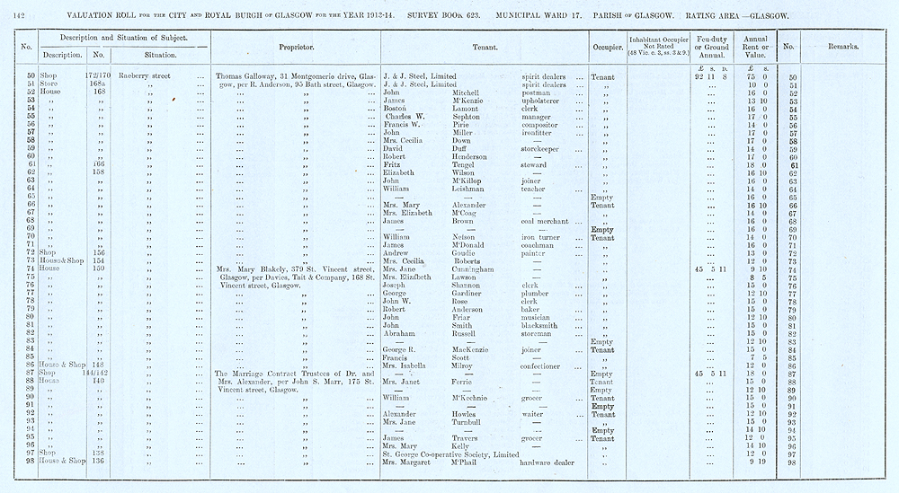 Glasgow Valuation Roll VR 1913-14, Ward 17, p142