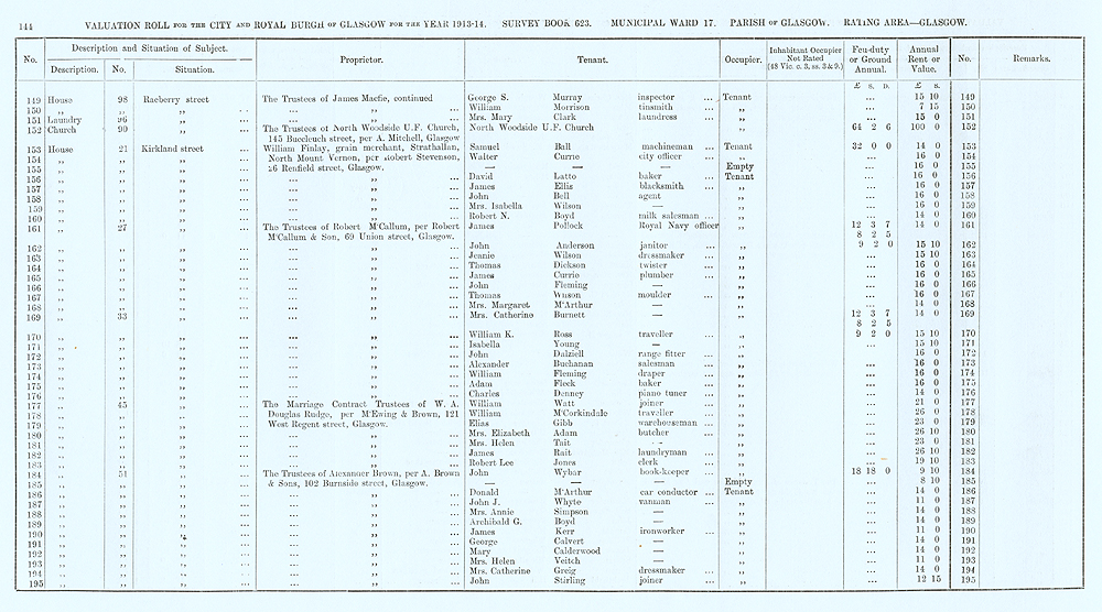 Glasgow Valuation Roll VR 1913-14, Ward 17, p144