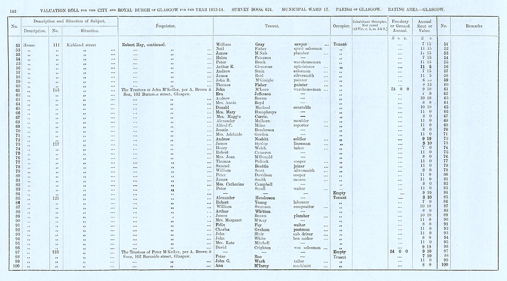 Glasgow Valuation Roll VR 1913-14, Ward 17, p148