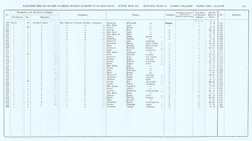 Glasgow Valuation Roll VR 1913-14, Ward 17, p151