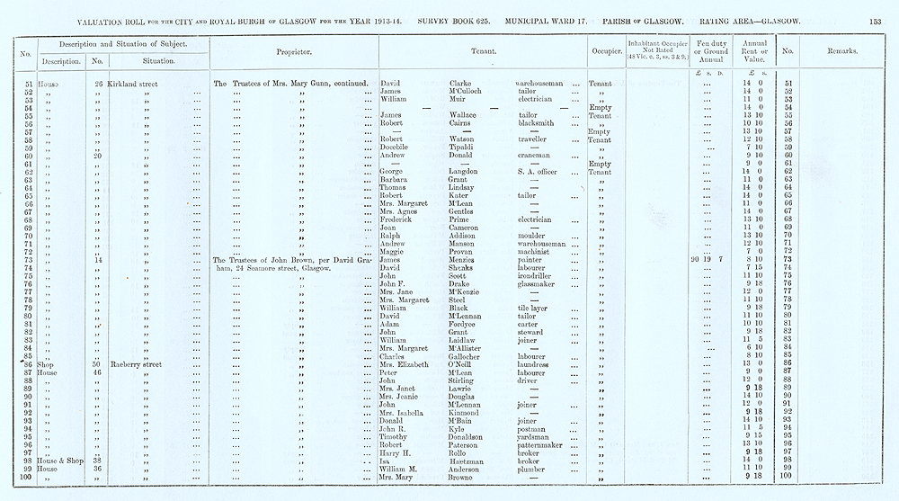Glasgow Valuation Roll VR 1913-14, Ward 17, p153