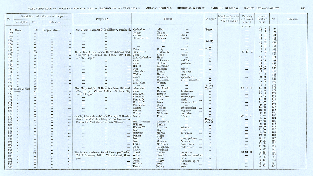 Glasgow Valuation Roll VR 1913-14, Ward 17, p155
