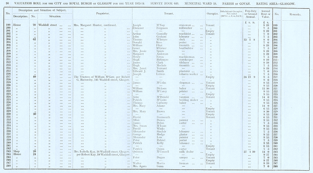 Glasgow Valuation Roll VR 1913-14, Ward 18, p036
