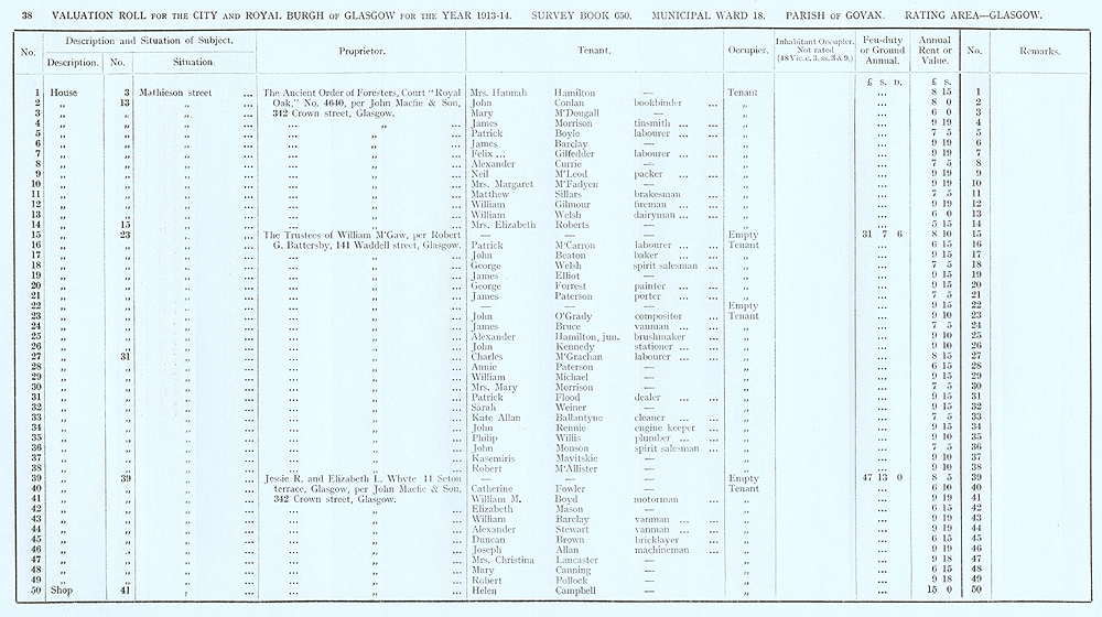 Glasgow Valuation Roll VR 1913-14, Ward 18, p038