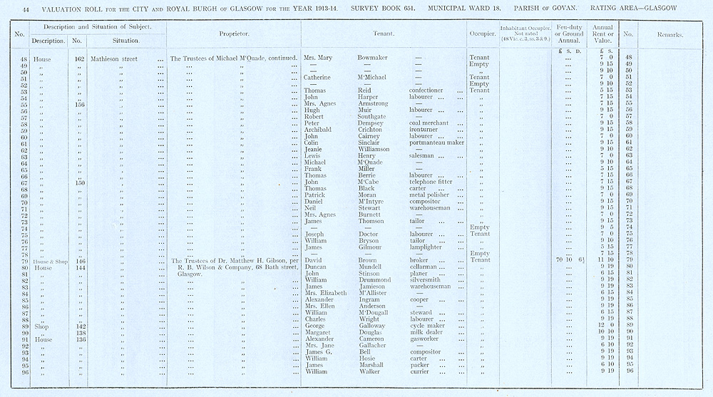 Glasgow Valuation Roll VR 1913-14, Ward 18, p044