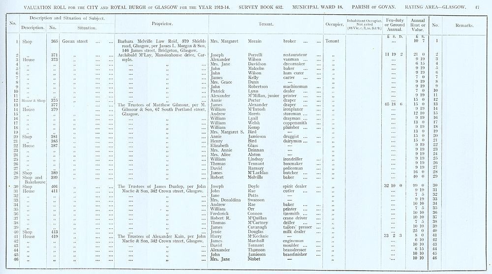 Glasgow Valuation Roll VR 1913-14, Ward 18, p047