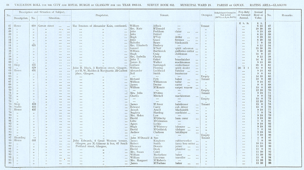Glasgow Valuation Roll VR 1913-14, Ward 18, p048