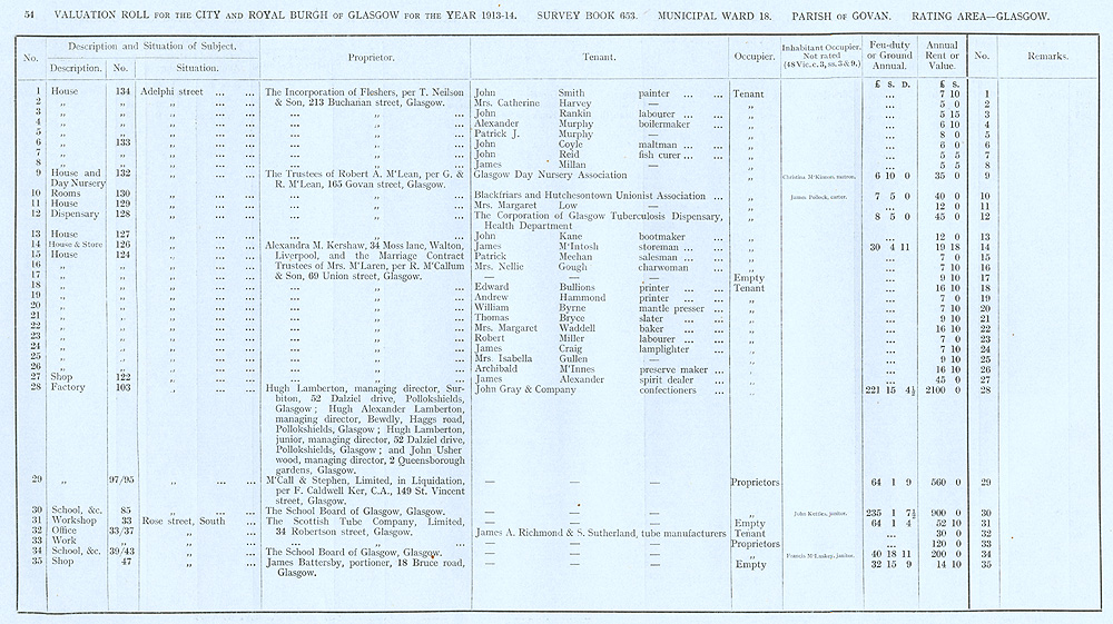 Glasgow Valuation Roll VR 1913-14, Ward 18, p054