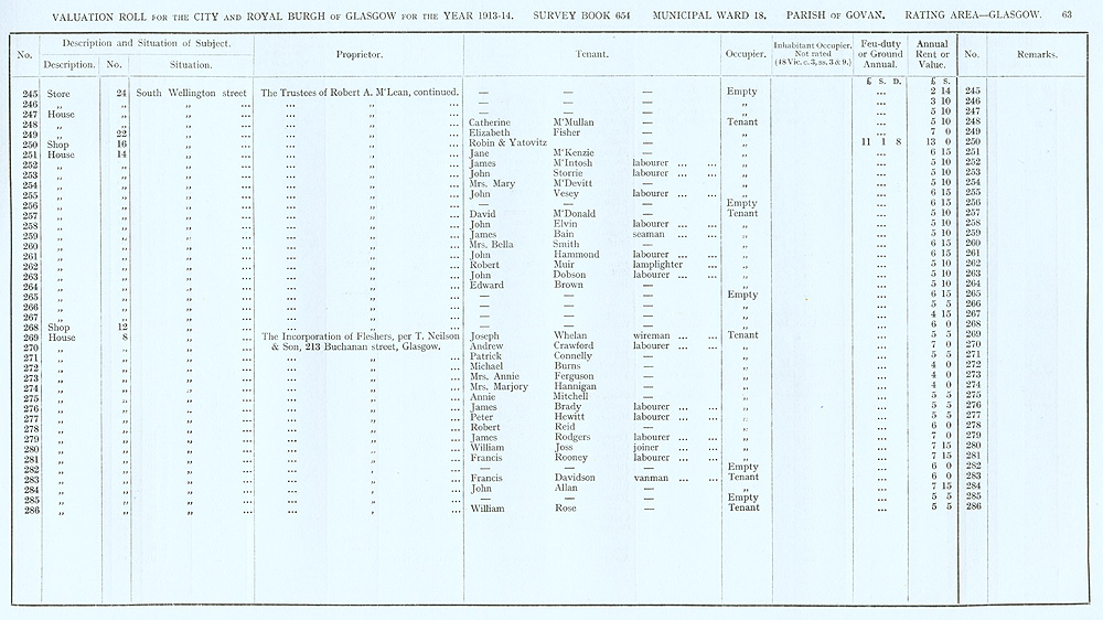 Glasgow Valuation Roll VR 1913-14, Ward 18, p063