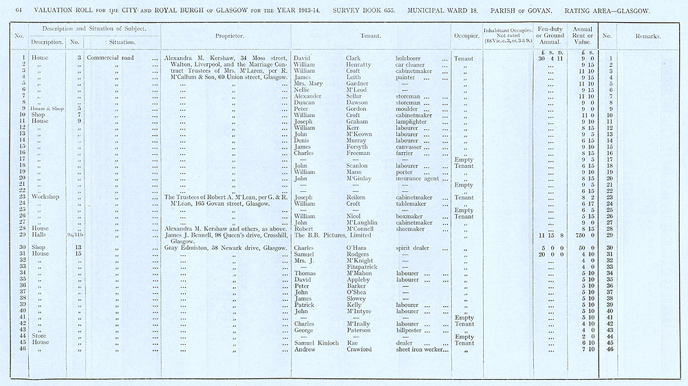 Glasgow Valuation Roll VR 1913-14, Ward 18, p064