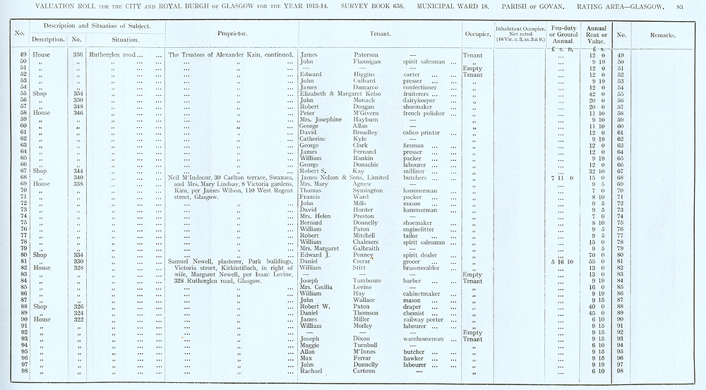 Glasgow Valuation Roll VR 1913-14, Ward 18, p083