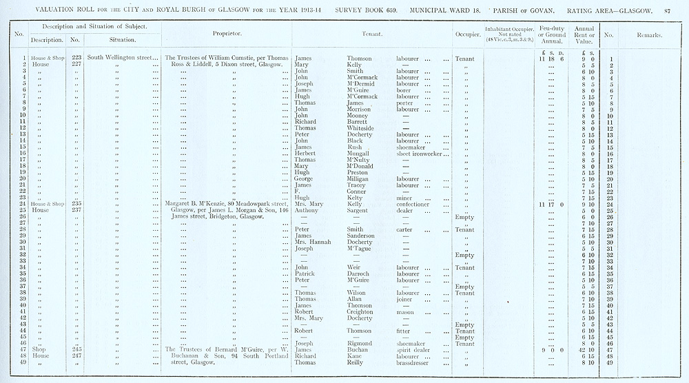 Glasgow Valuation Roll VR 1913-14, Ward 18, p087