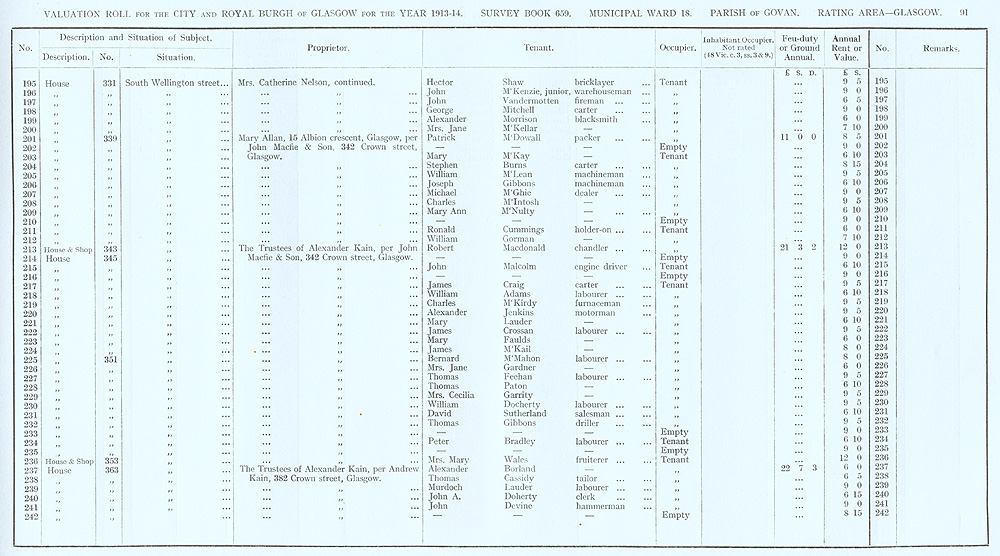 Glasgow Valuation Roll VR 1913-14, Ward 18, p091