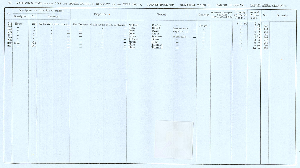 Glasgow Valuation Roll VR 1913-14, Ward 18, p092