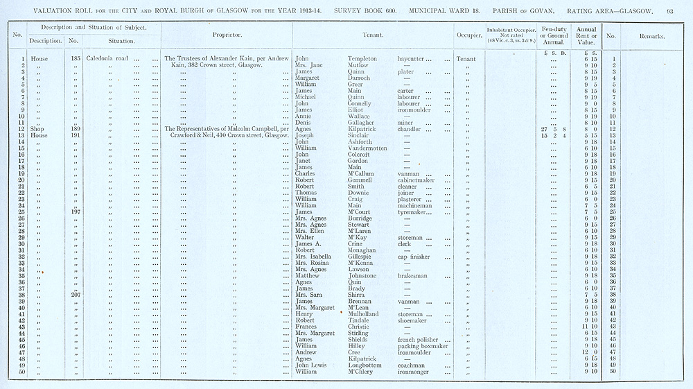 Glasgow Valuation Roll VR 1913-14, Ward 18, p093