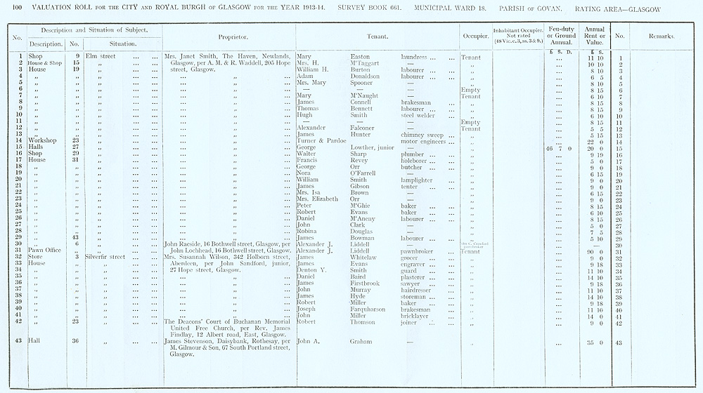 Glasgow Valuation Roll VR 1913-14, Ward 18, p100