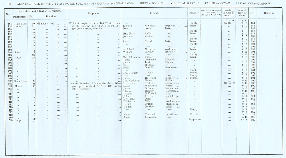 Glasgow Valuation Roll VR 1913-14, Ward 18, p104
