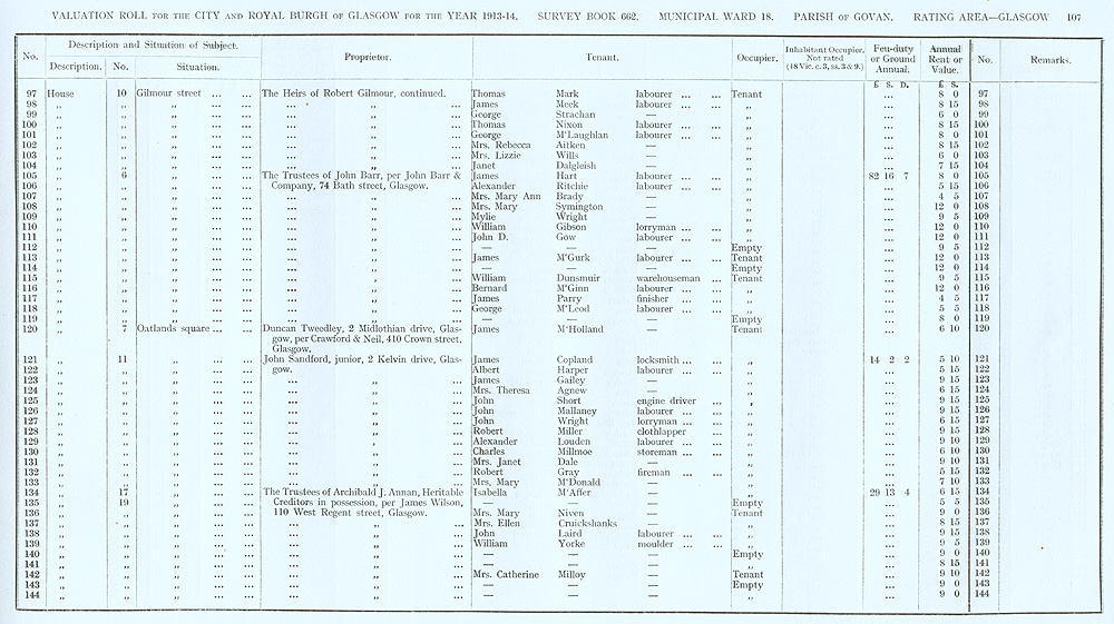 Glasgow Valuation Roll VR 1913-14, Ward 18, p107