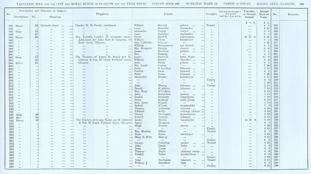 Glasgow Valuation Roll VR 1913-14, Ward 18, p109