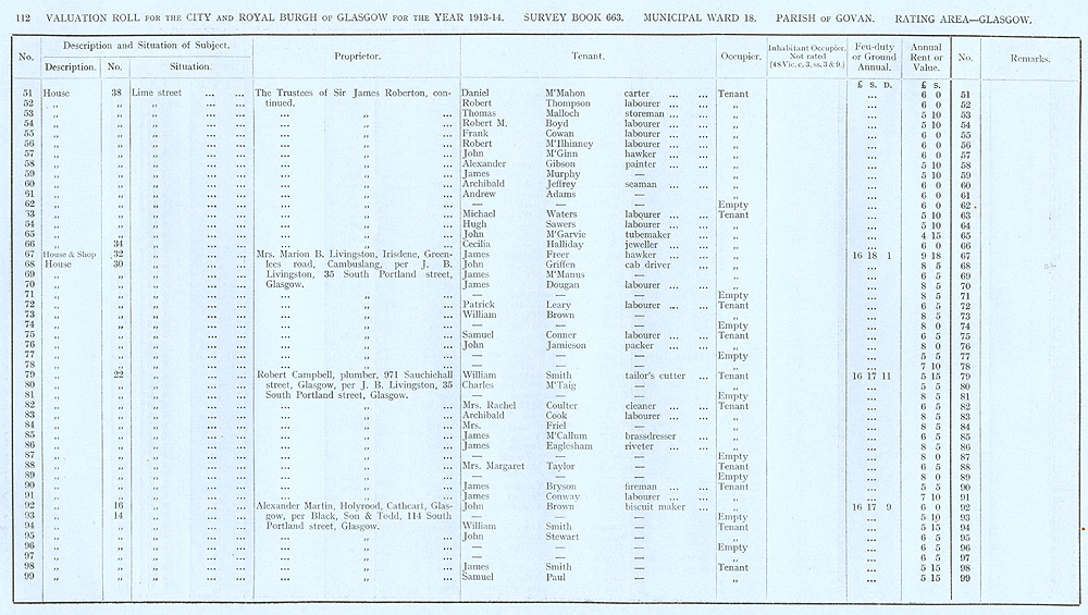 Glasgow Valuation Roll VR 1913-14, Ward 18, p112