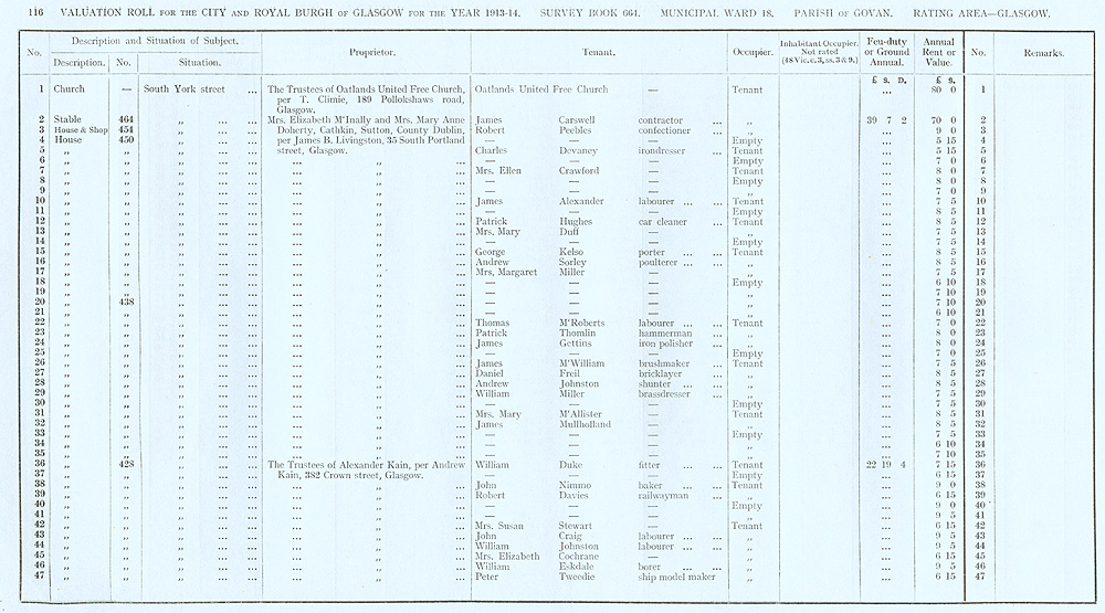 Glasgow Valuation Roll VR 1913-14, Ward 18, p116