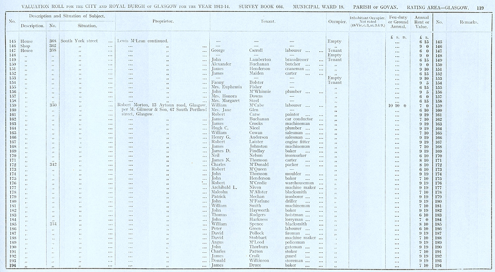 Glasgow Valuation Roll VR 1913-14, Ward 18, p119