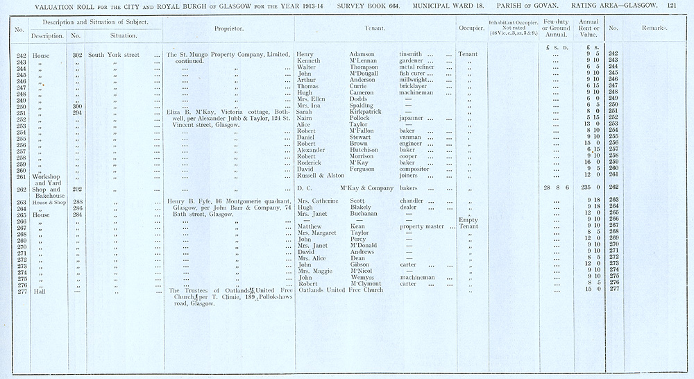 Glasgow Valuation Roll VR 1913-14, Ward 18, p121