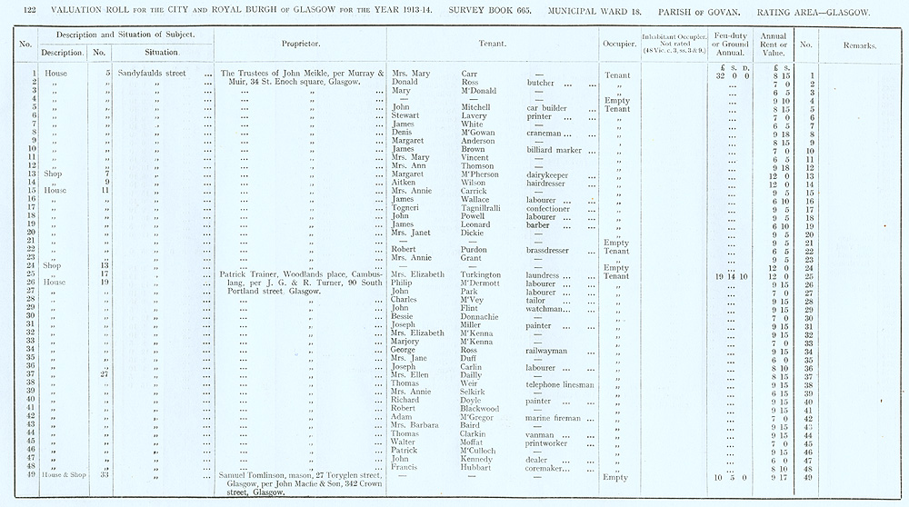 Glasgow Valuation Roll VR 1913-14, Ward 18, p122