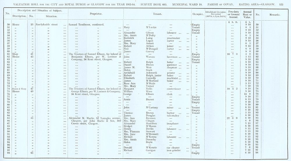 Glasgow Valuation Roll VR 1913-14, Ward 18, p123