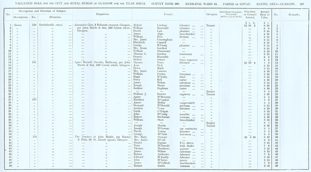 Glasgow Valuation Roll VR 1913-14, Ward 18, p127