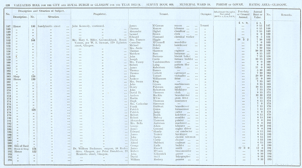 Glasgow Valuation Roll VR 1913-14, Ward 18, p130