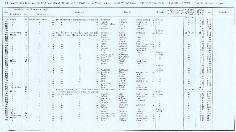 Glasgow Valuation Roll VR 1913-14, Ward 18, p132
