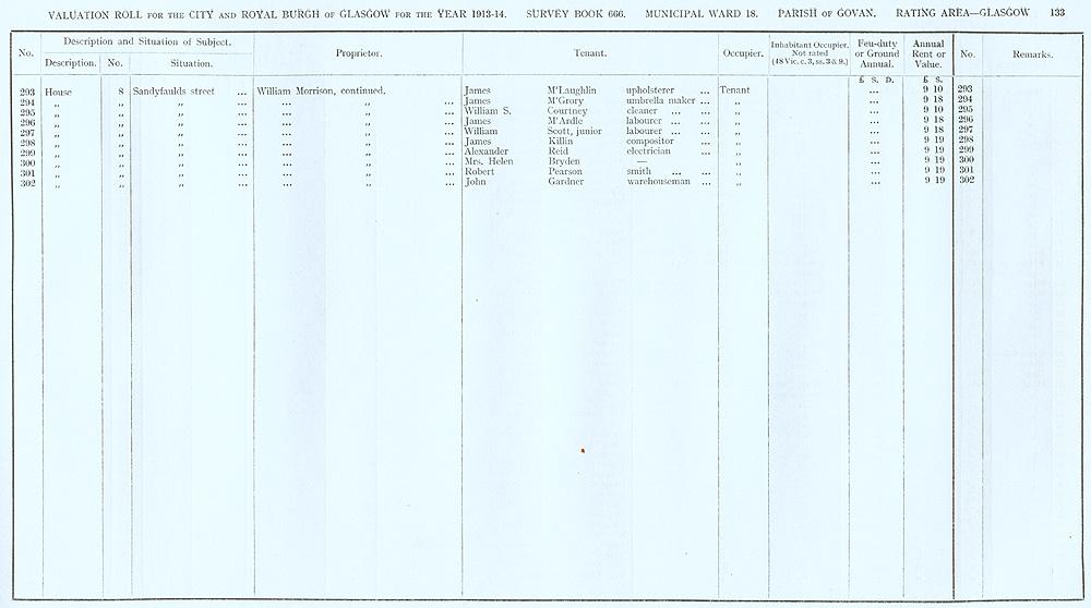 Glasgow Valuation Roll VR 1913-14, Ward 18, p133