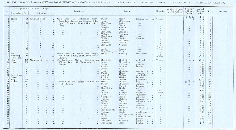 Glasgow Valuation Roll VR 1913-14, Ward 18, p134