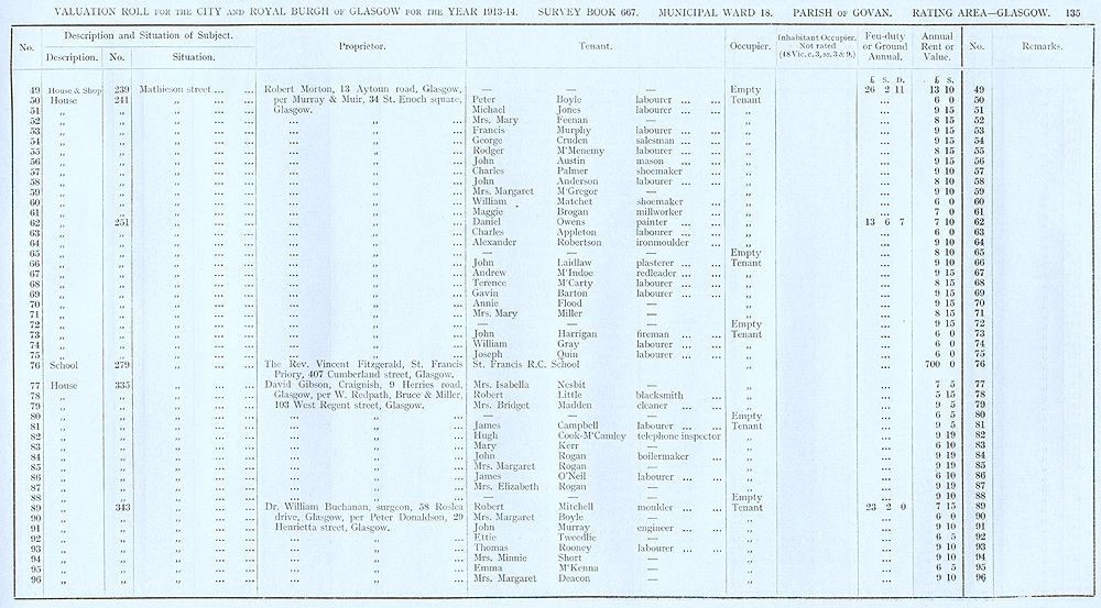 Glasgow Valuation Roll VR 1913-14, Ward 18, p135