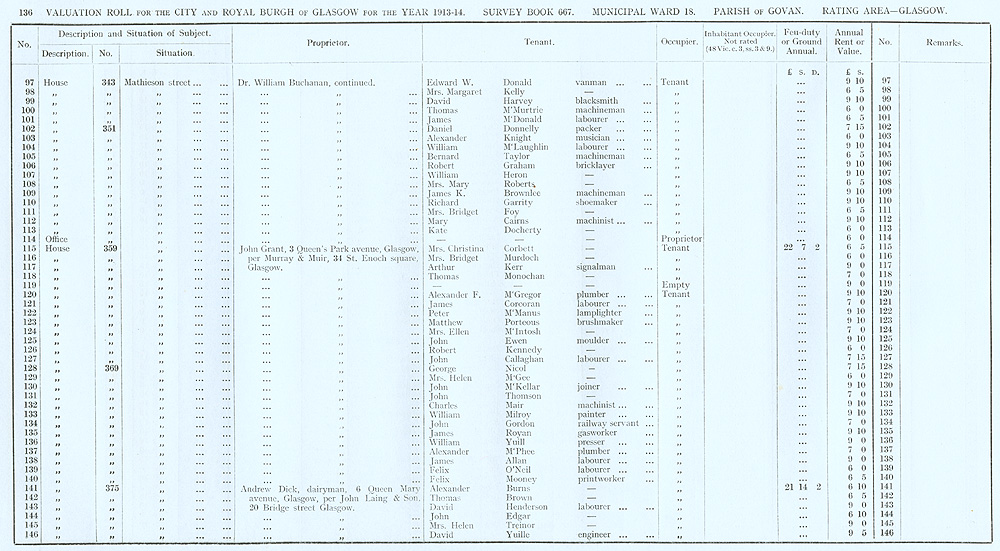 Glasgow Valuation Roll VR 1913-14, Ward 18, p136